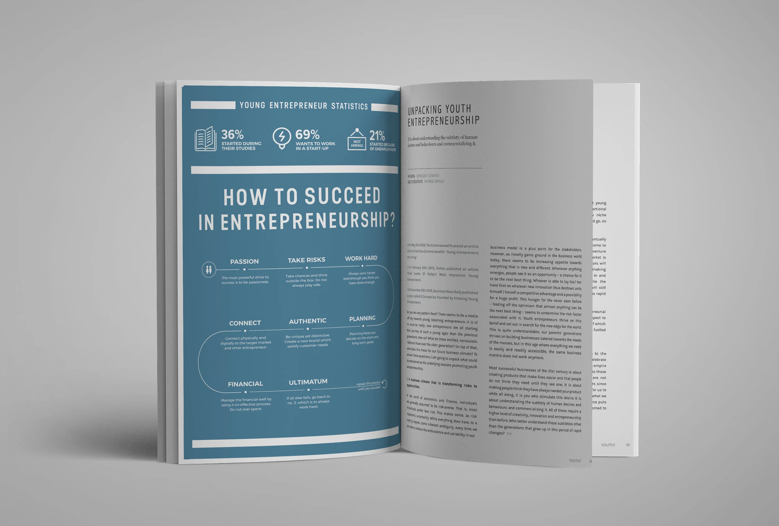I was in charge of image sources, page layout as well as infographic illustration of "Youth Entrepreneurship"